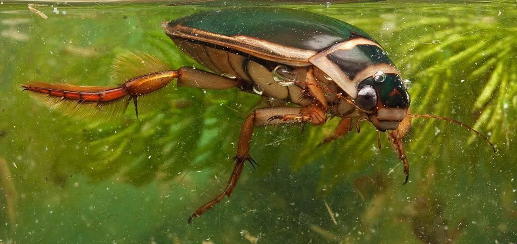 Розгляньте зовнішню будову водолюба чорного. За допомогою атласу комах, установіть ознаки пристосування комахи до умов середовища.