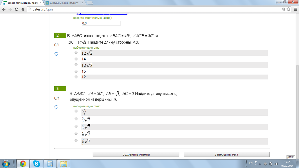 АВ/sin30=BC/sin45;АВ обозначим за Х