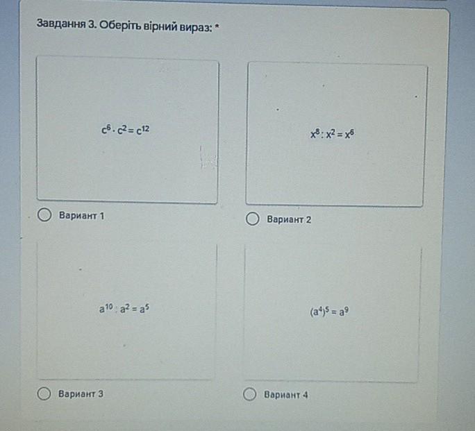 a10:a2≠a5 - т.к. при делении показатели степени отнимаются, правильно a10:a2≠a8