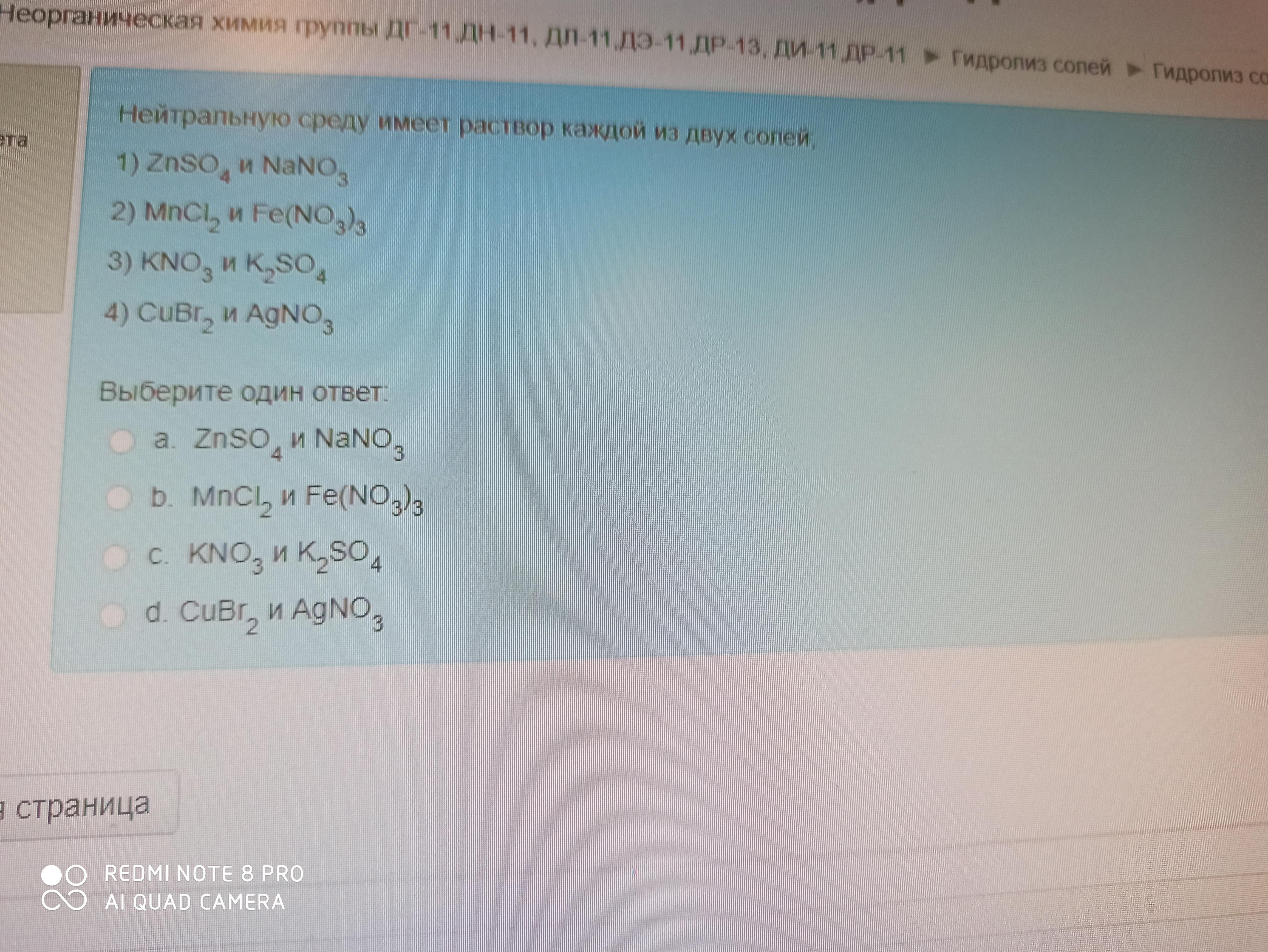 В ряду 3) КNO3 и K2SO4 - нитрат калия и сульфат калия - соли, образованные сильным основанием и сильной кислотой, поэтому они не подвергаются гидролизу, следовательно, среда среды будет нейтральной (рН = 7).