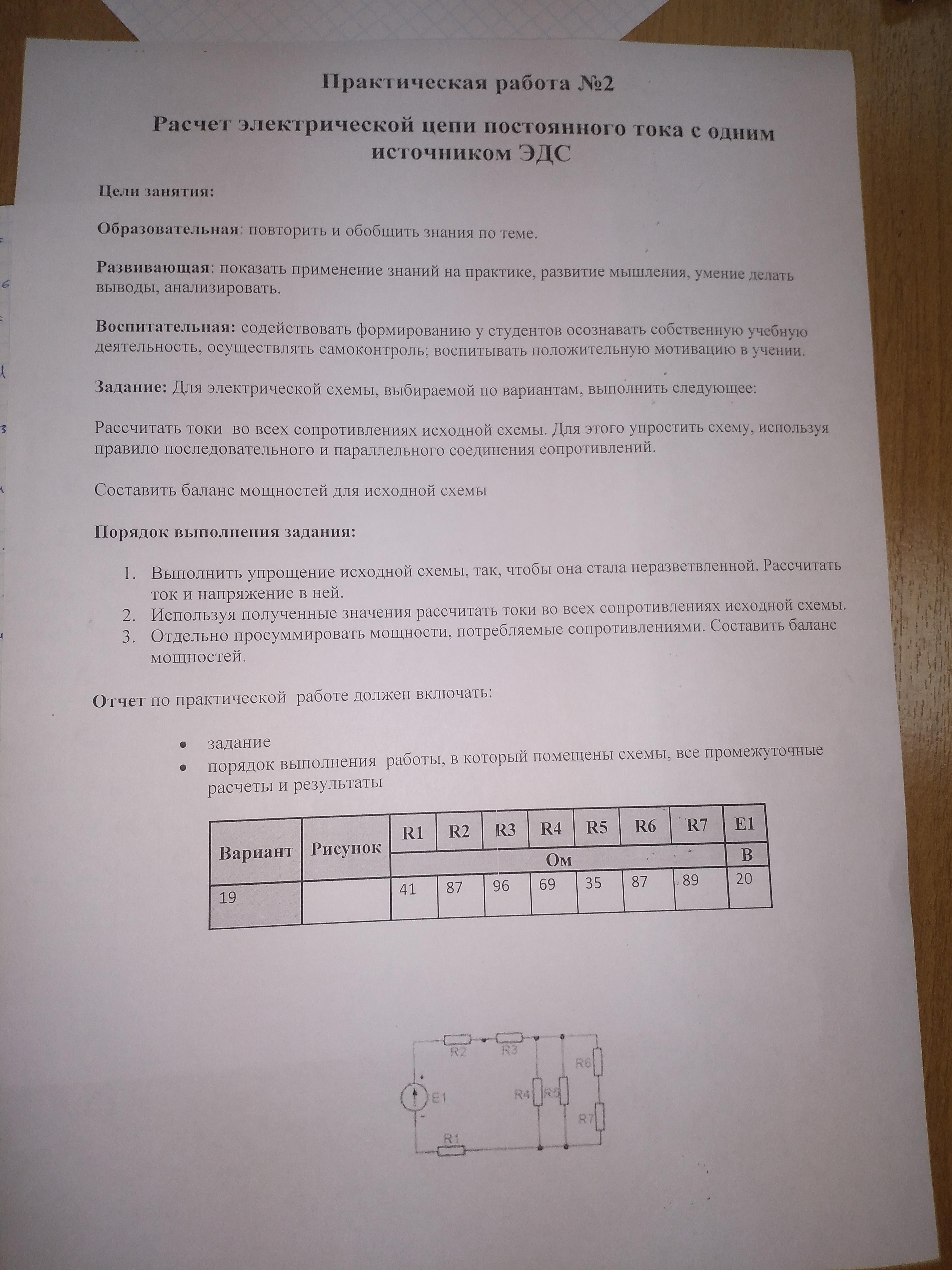 Практическая работа. Расчёт электрической цепи постоянного тока с одним источником ЭДС