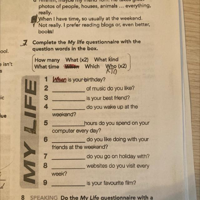 Ответ : 2 what kind 3 who 4 what time 5 how many 6 what 7 who 8 which 9 what
