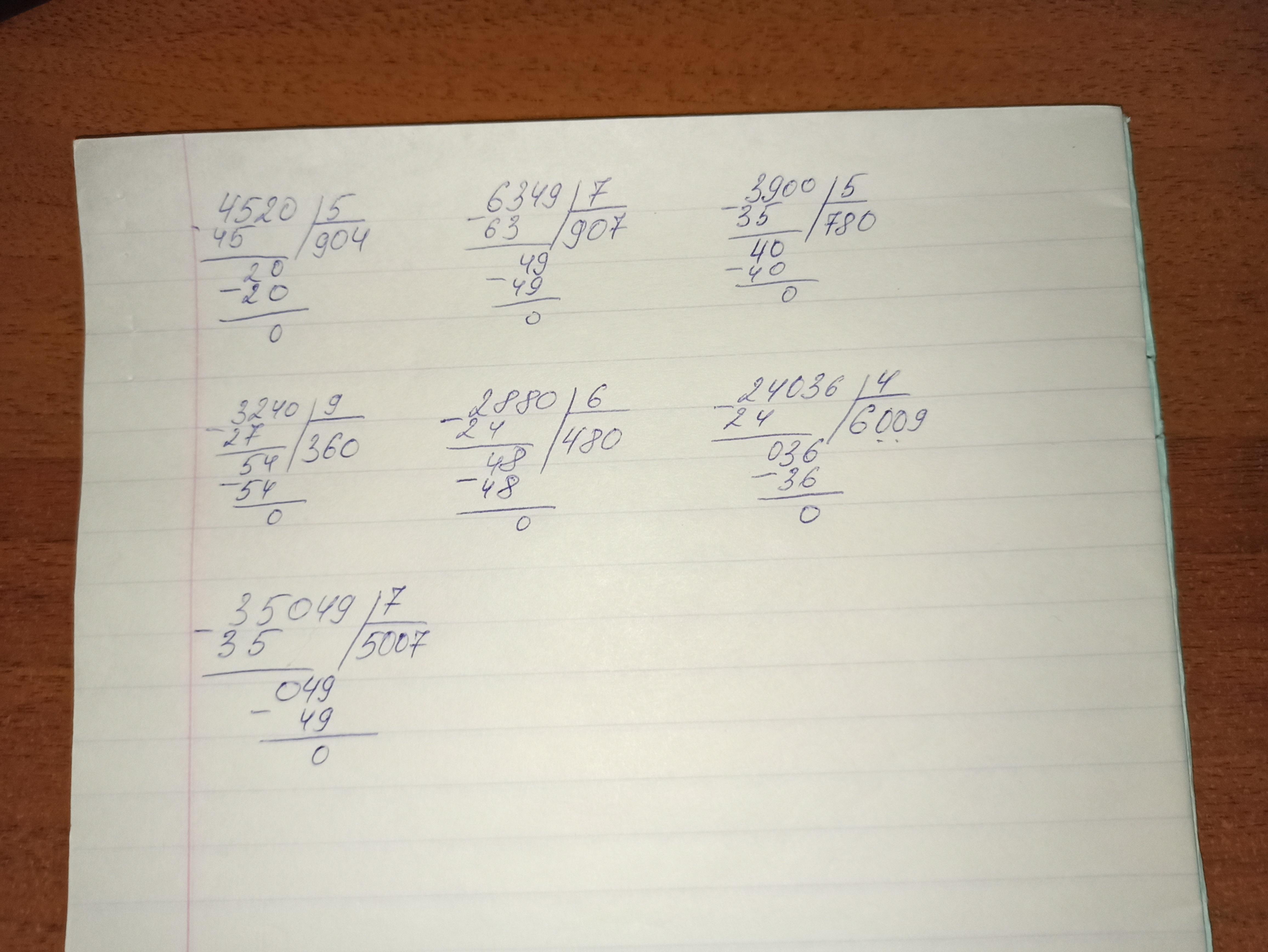 плис 4520:5 в столбик 6349:7 в столбик 3900:5 в столбик 3240:9 в столбик 2880:6 в столбик 24036:4 в столбик 35049:7 в столбик !! умоляю, срочно