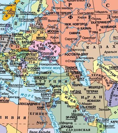 Як видно із карти, на півдні Чорного моря знаходиться сучасна країна Туреччина (на російській мові - Турция)