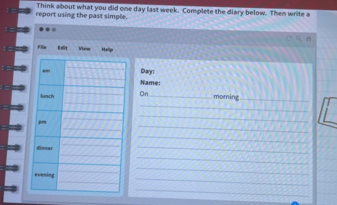 Задание на фото (написать репорт в паст Симпл о том, чем занималась на прошлой неделе)
