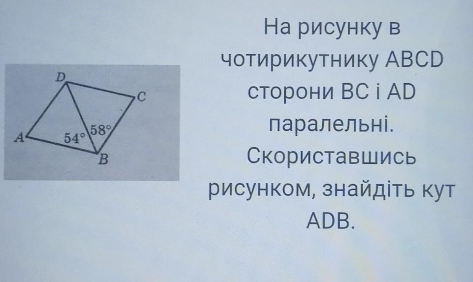 АД і БЦ паралельні, тоді кутАБД = кутБДЦ;