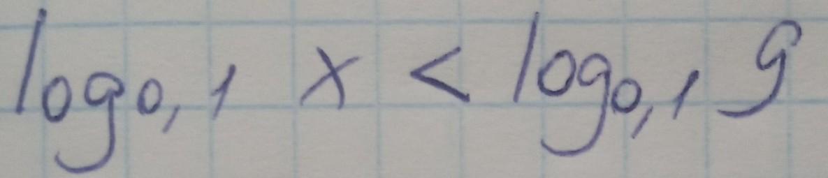 Для 0<a(0,1)<1 выражение ㏒0.1(X)<㏒0.1(9) равно x>b, то есть