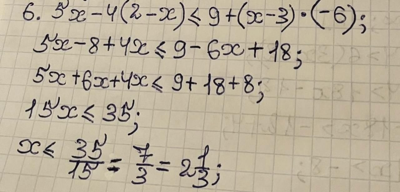 Розв’яжіть нерівність 5х – 4(2 – х) ≤ 9 + (х – 3)· (–6). Зобразіть на координатній прямій числовий проміжок, який є розв’язком нерівності. Запишіть відповідь. !!!!ТОЛЬКО КООРДИНАТНУЮ ПРЯМУЮ СДЕЛАТЬ (КТО БУДЕТ ПИСАТЬ ЕРУНДУ БУДУ БАНИТЬ)