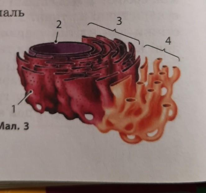3.Гранулярну ендоплазматичну сітку на мал. позначено цифрою: 6) 2 в) 3 г) 4