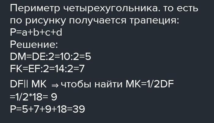 найдите периметр четырехугольника DEFK если известны его стороны: