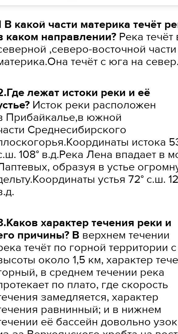 1. В какой части материка течёт река, в каком направлении? 2. Где лежат истоки реки и её устье? 3. Каков характер течения реки и его причины? 4. Питание и режим реки, их зависимость от климата территории. 5. Оценка величины речной системы и бассейна реки. 6. Роль реки в природе и жизни населения территории, по которой течёт река. Умоляю срочно даю 35 баллов!!!