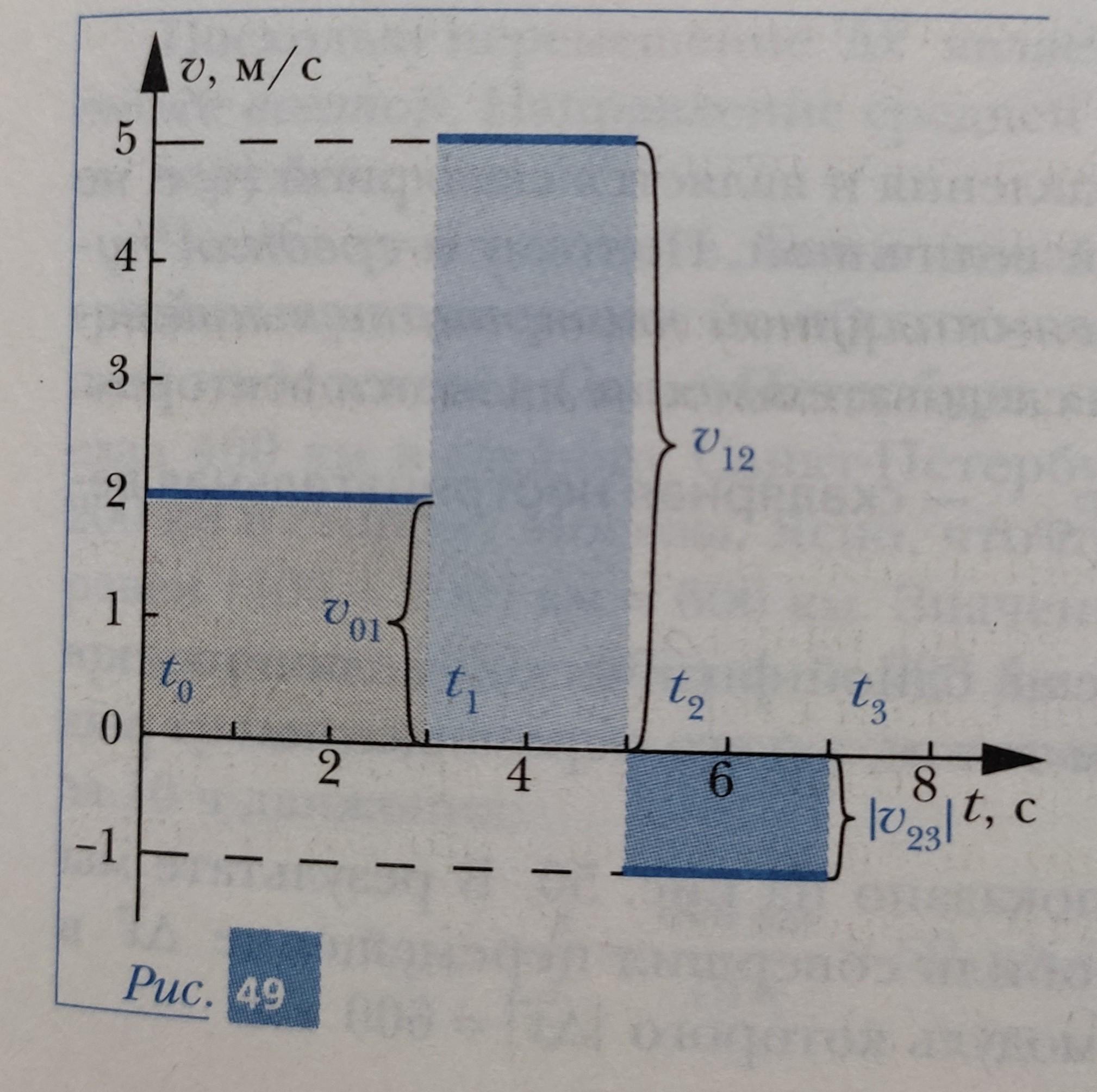 *2 На рис. 49 приведён график зависимости значения скорости движения тела вдоль оси Х от времени. Ответьте на вопросы: а) чему равны значения скоростей: Vol. 212 И О23' б) чему равны пути: Sol, S12, S02 Sog sis и Spg?