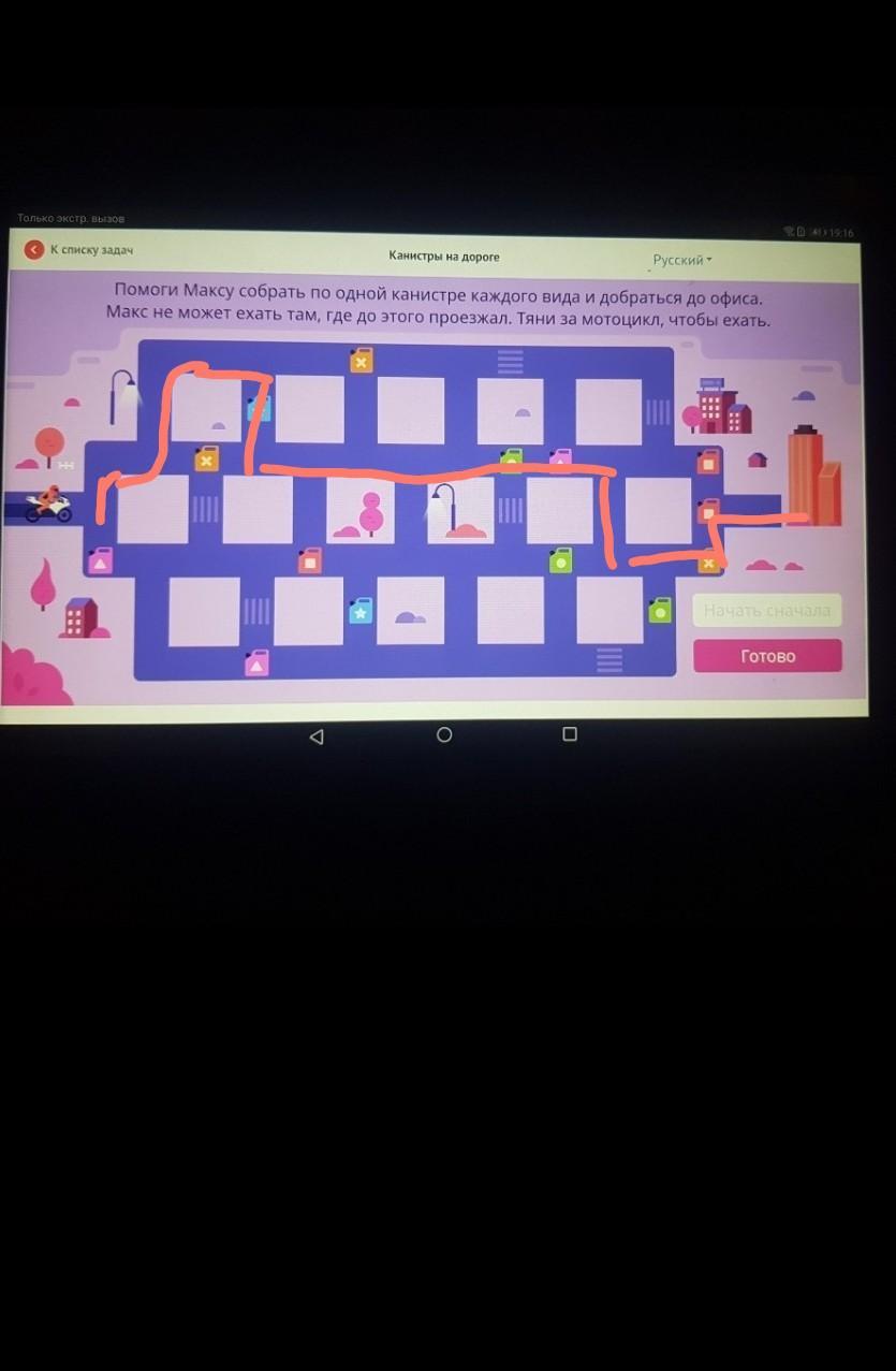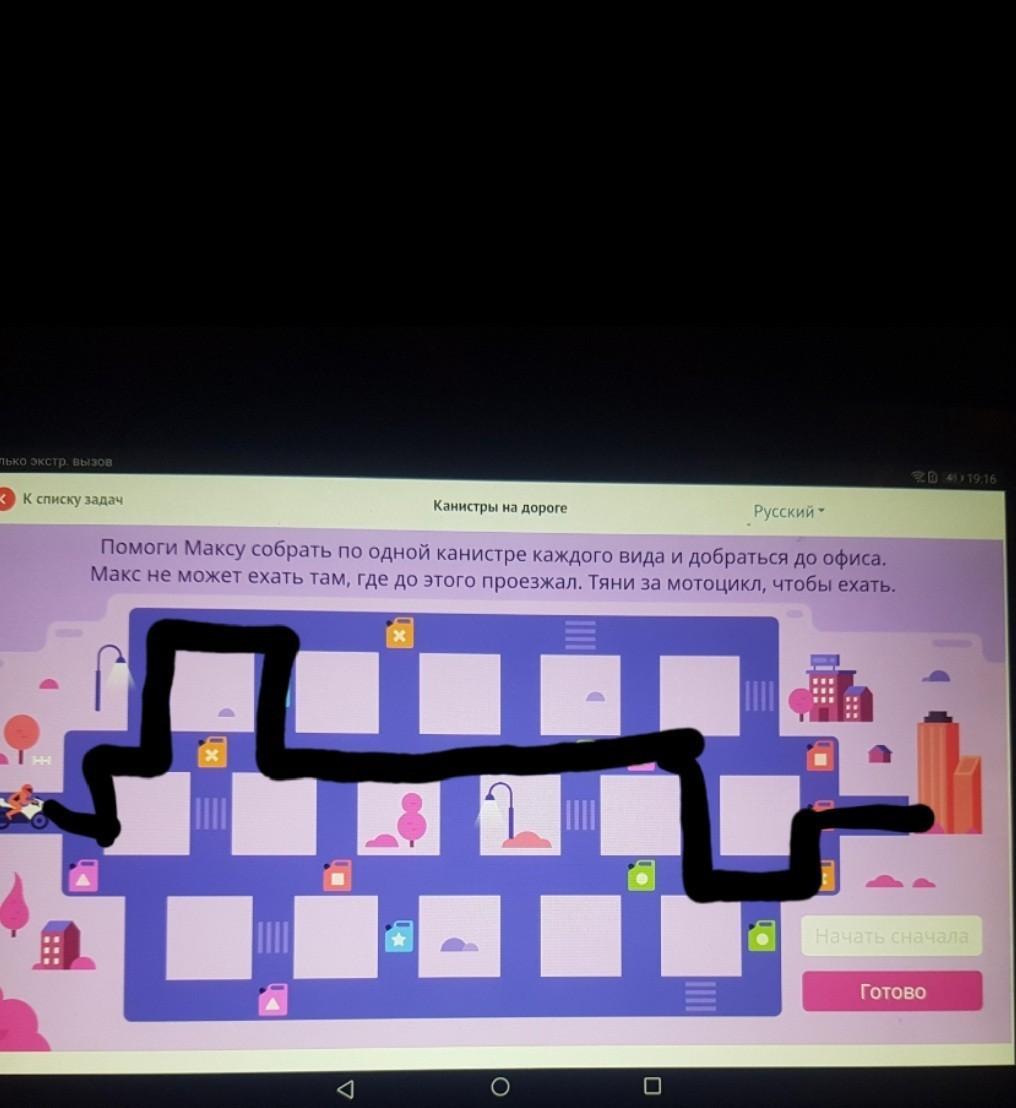 Помоги Максу собрать по одной канистре каждого вида и добраться до офиса. Макс не может ехать там где уже проезжал