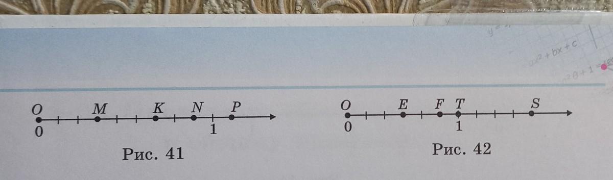 2) Какие координаты имеют точки M, K, N и P (рис. 41)? ) 3) Чему равны расстояния от точки 0 до точек E, F, T и S (рис. 42)?