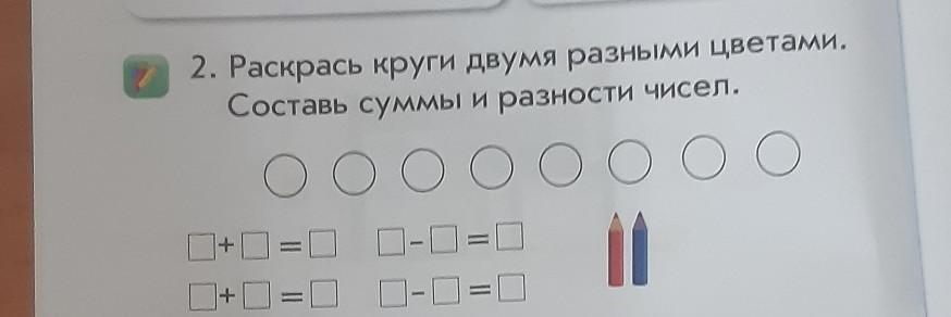2. Раскрась круги двумя разными цветами. Составь суммы и разности чисел. О ООООООО + -= D-D=C О - + D