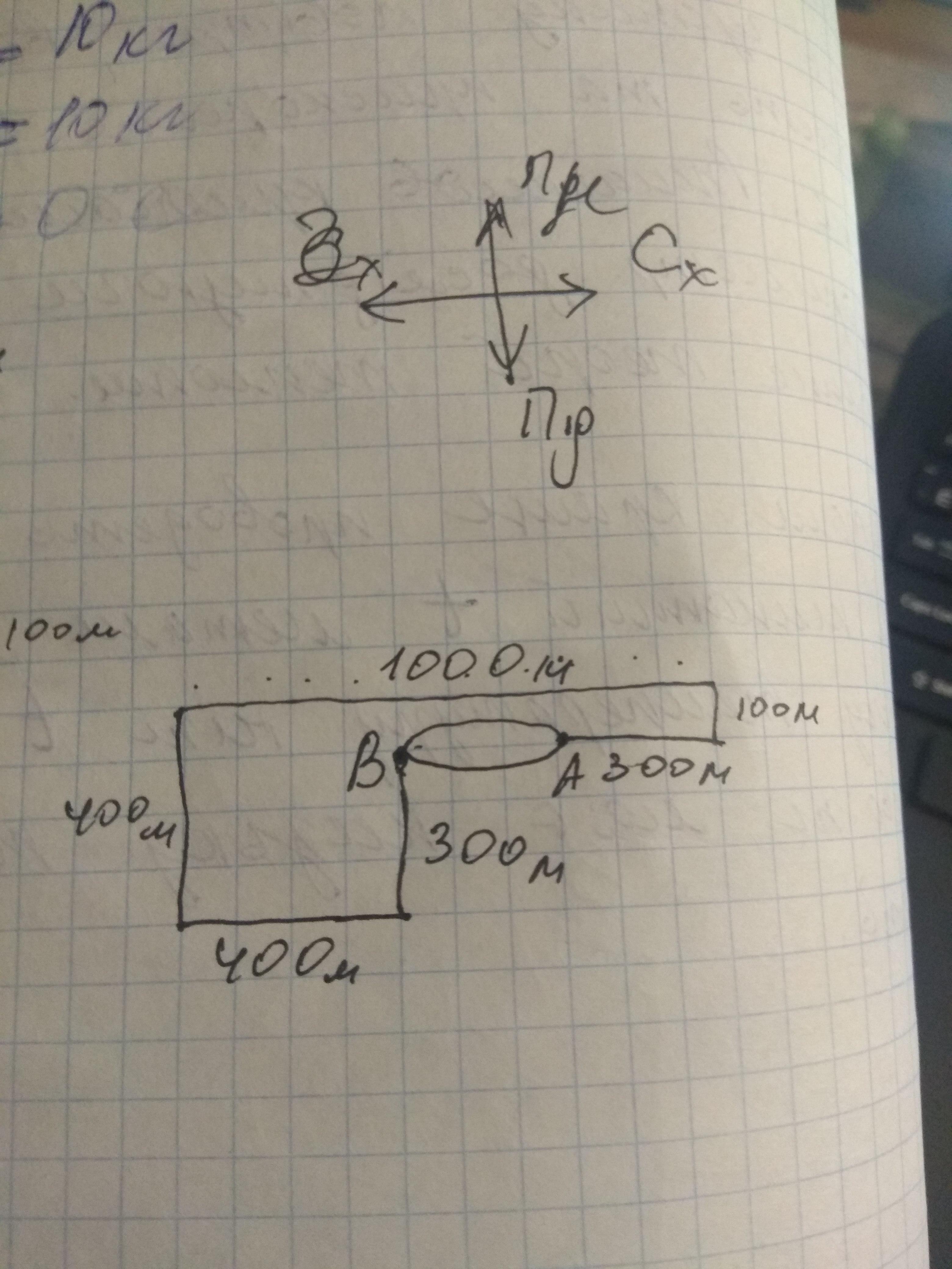 автомобіль їхав 30000 см на схiд потім 100 м на пiвнiч,далi 1 ки на захiд,0,4 км,на пiвдень,40м на схiд та 0,3 км на пiвнiч.Яким е перемiщення автомобiля?