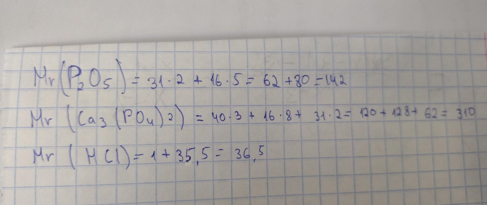 найти относительную молекулярную массу таких ваществ : P205, Ca3(PO4) 2, HCI