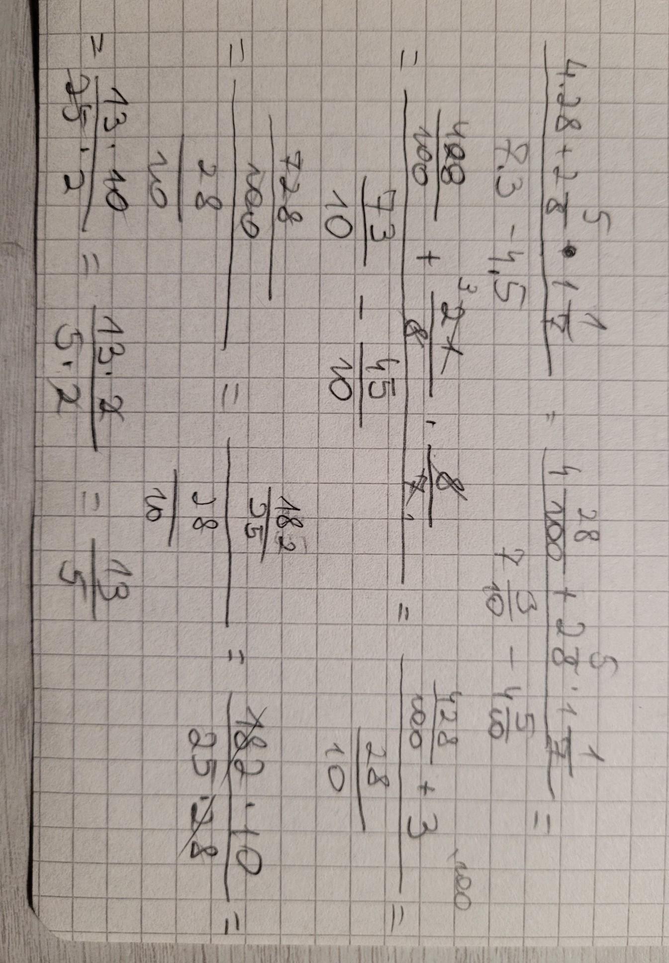 -вычисляем знаменатель=7.3-4.5=2.8