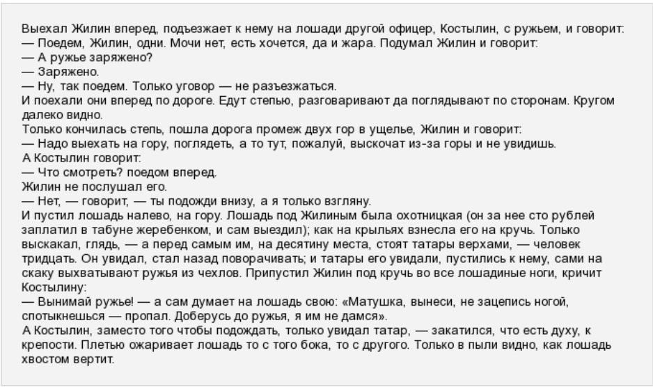 На Кавказе служили русские офицеры Жилин и Костылин. По горам можно было проехать только в составе медленно двигающегося обоза. Офицеры сначала поехали вместе со всеми, но потом им надоело ждать и решено было ехать дальше вдвоем.