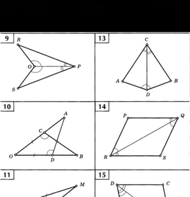 найдите пары равных треугольников и докажите их равенство (9;10;13;14)