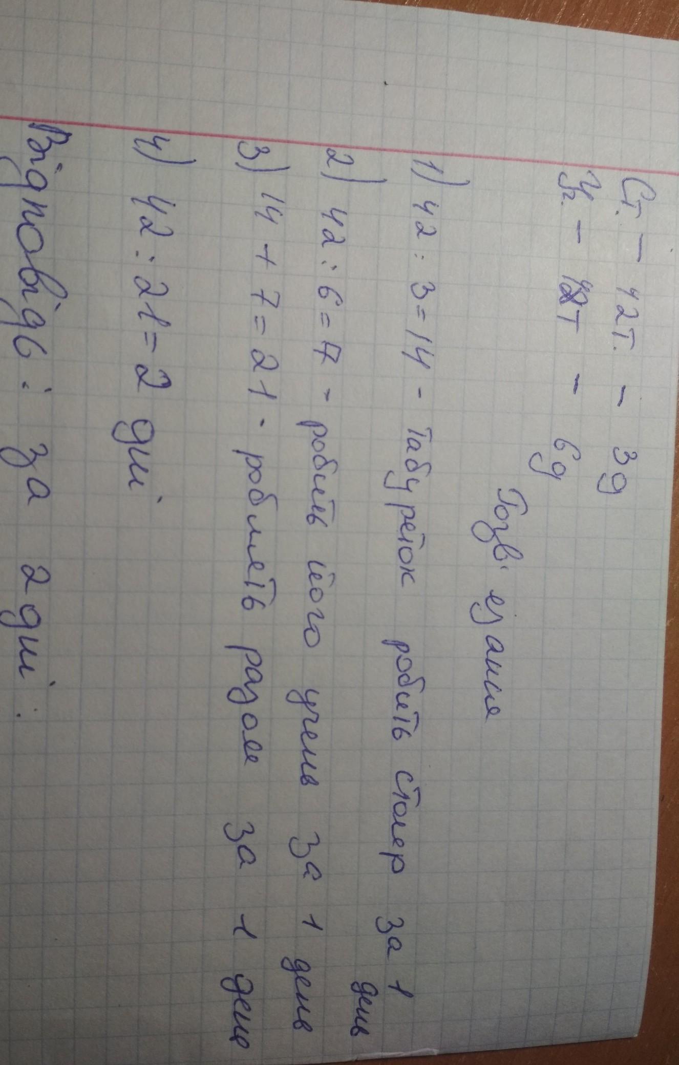 2)42÷6=7( табуреток робить його учень за 1 день)