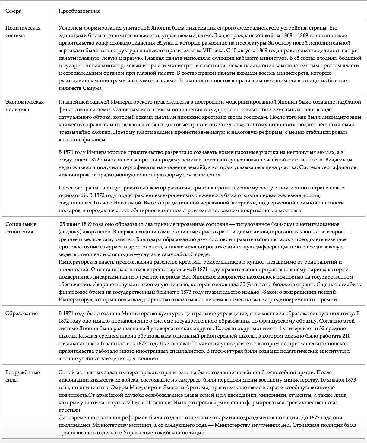 систематизируйте в таблице информацию о реформах эпохи мэйдзи сделайте общее заключение о результате и значении реформ