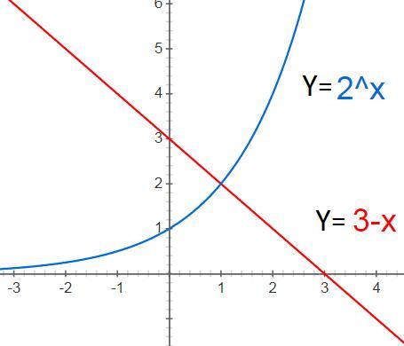 построим график y=2ˣ и у=3-х и найдем точку пересечения