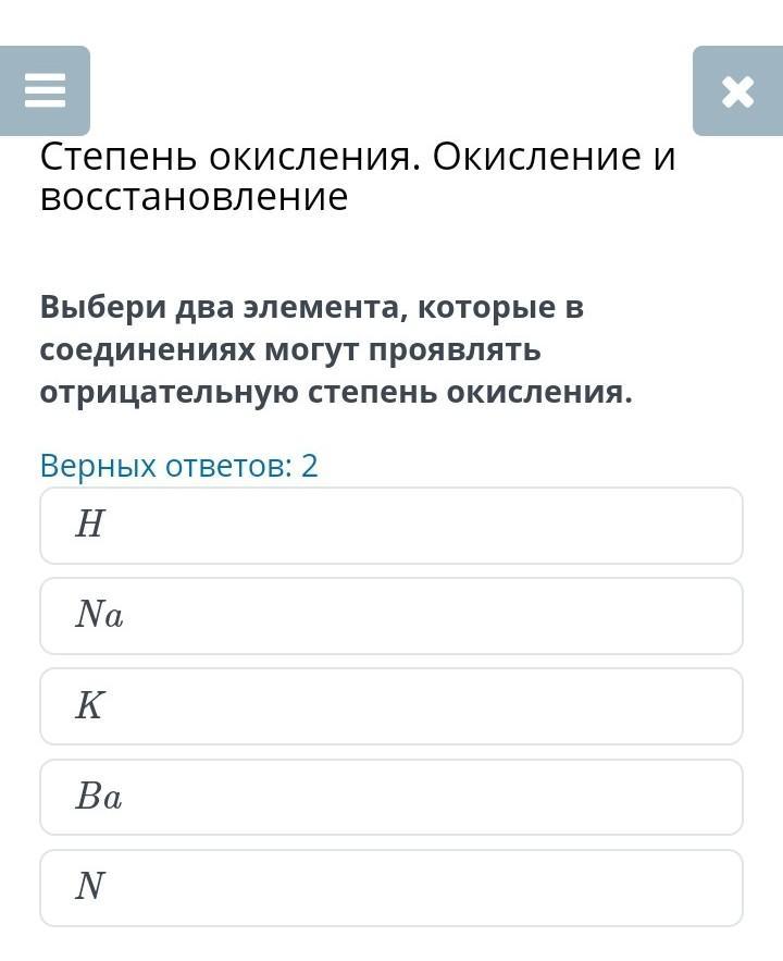 Выбери два элемента, которые в соединениях могут проявлять отрицательную степень окисления.