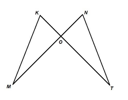 Равные отрезки MN и KT пересекаются в точке О, так что MO:ON=TO:OK=5:2. Докажите, что треугольник MOK равен треугольнику TON.