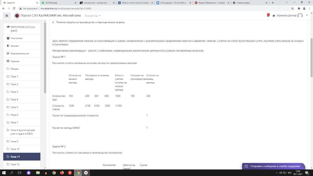 Рассчитать остаток материала на конец месяца по предлагаемым методам