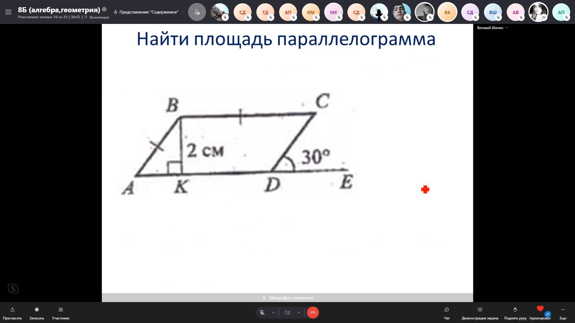 ΔABK - прямоугольный. Также ∠BAK=∠CDE=30° как соответственные углы при параллельных прямых AB и CD и секущей AD.