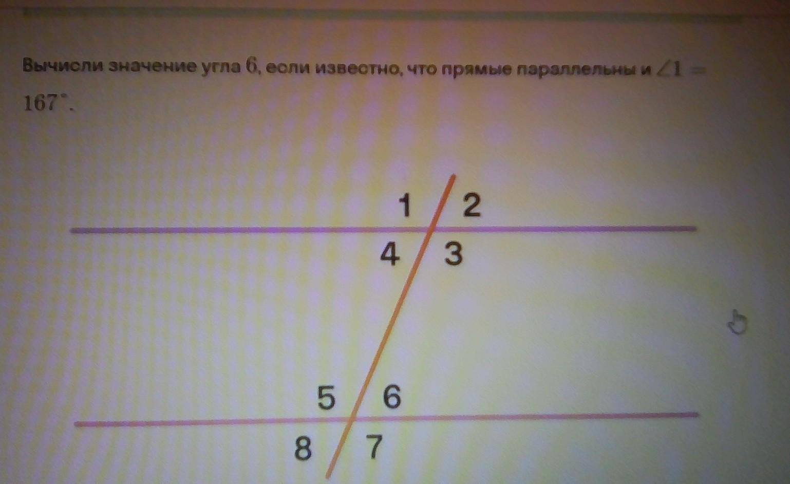 вычисли значение угла 6 если известно что прямые параллельны и угол 1 равен 167 градусов