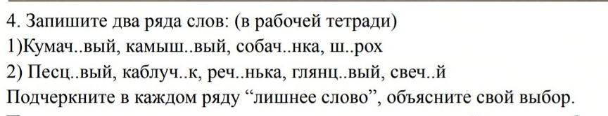 Ответ:1) Кумачевый, камышовый, собачонка, шорох.