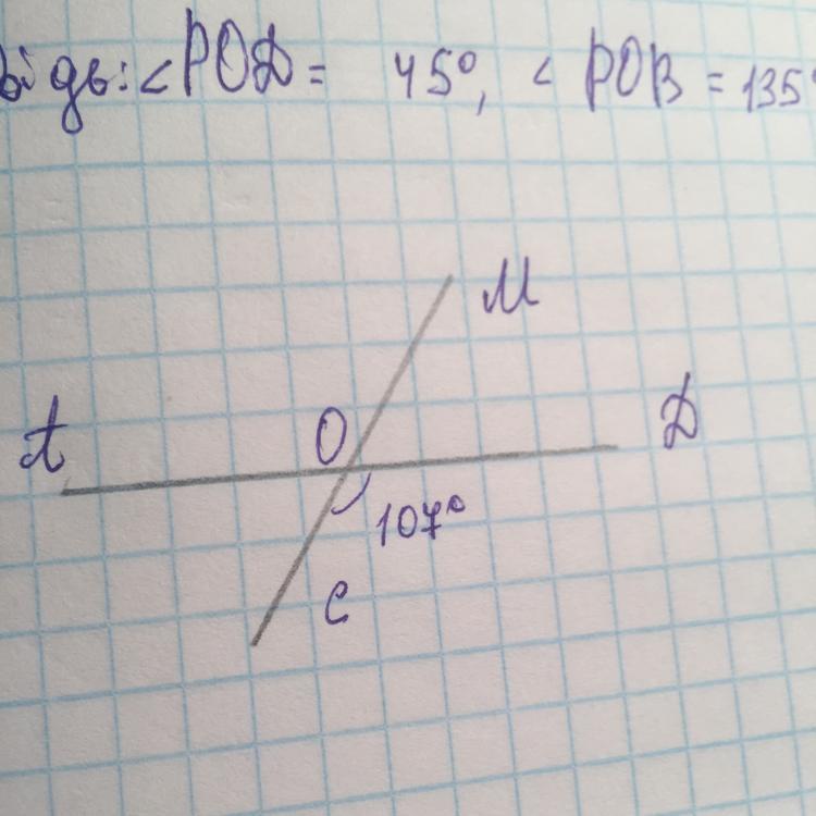 якщо МОА - 107° тоді за властивістю суміжних кутів → МОД=180-107=73°
