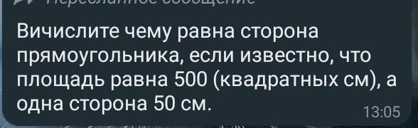 я просто 500 разделил на 50 и получил 10 ведь формула площадь равна а*б