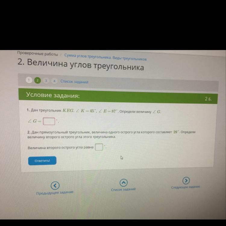Сумма острых углов в прямоугольном треугольнике равна 90 градусов