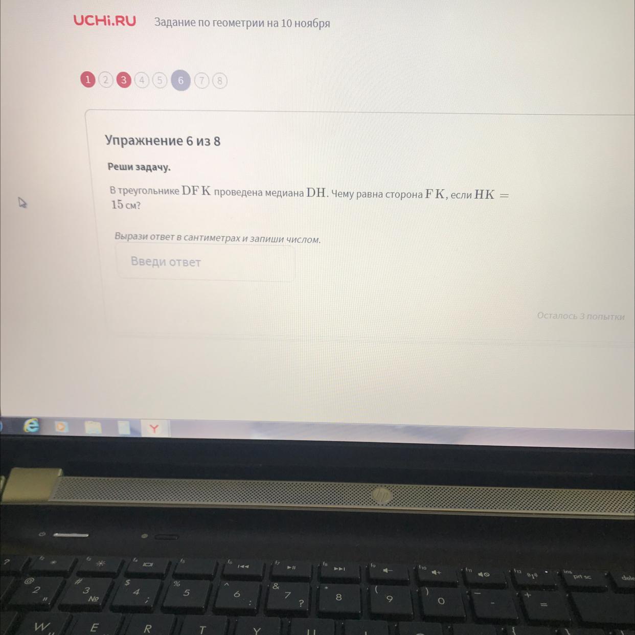 В треугольнике DFK проведена медиана DH. Чему равна сторона FK, если НК