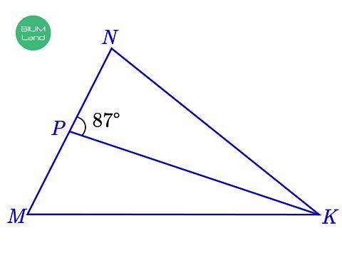 Учитывая треугольник MNK. Точка P берется от стенки MN так, чтобы <NPK = 87 °. Определите тип треугольника MRC.