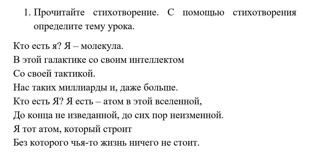 Прочитайте стихотворение.С помощью стихотворении определите тему урока.Кто есть я? Я-молекула дам много баллов