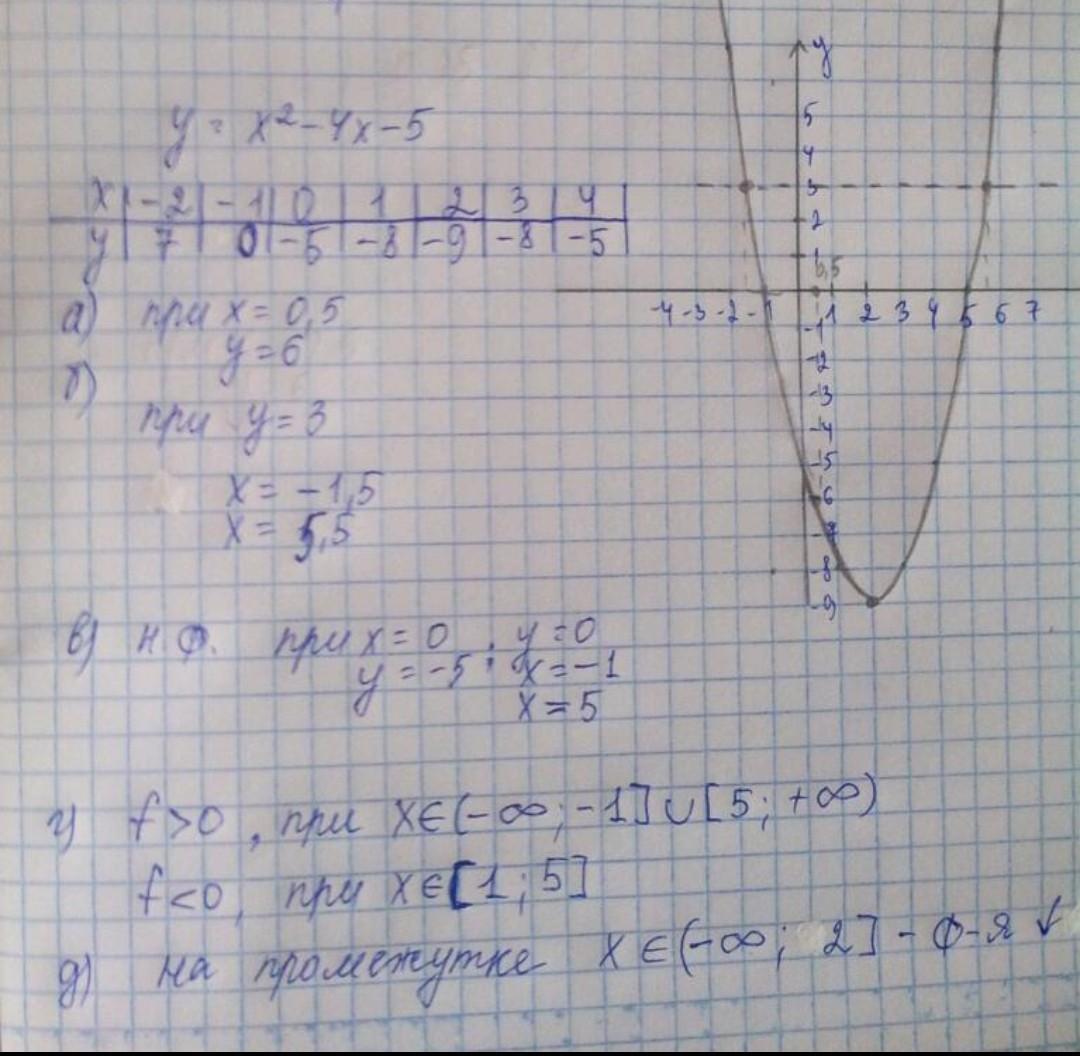 Г)промежутки в которых y>0 и в которых y<0