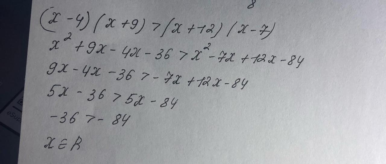 Доведіть нерівність (x-4)(x+9)>(x+12)(x-7)