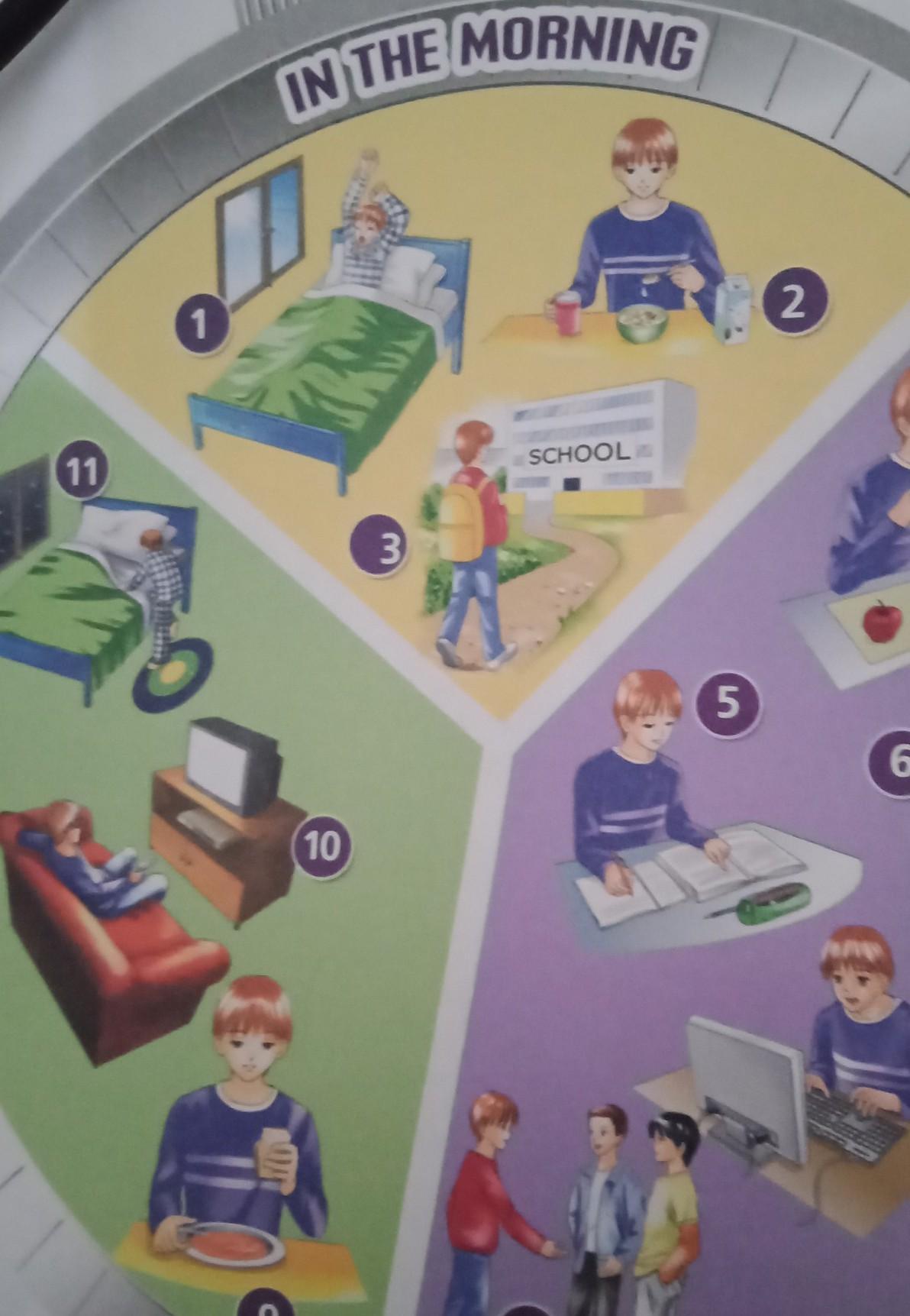 Ответ:Kevin gets up at 7 in the morning after that he has breakfast and goes to school.