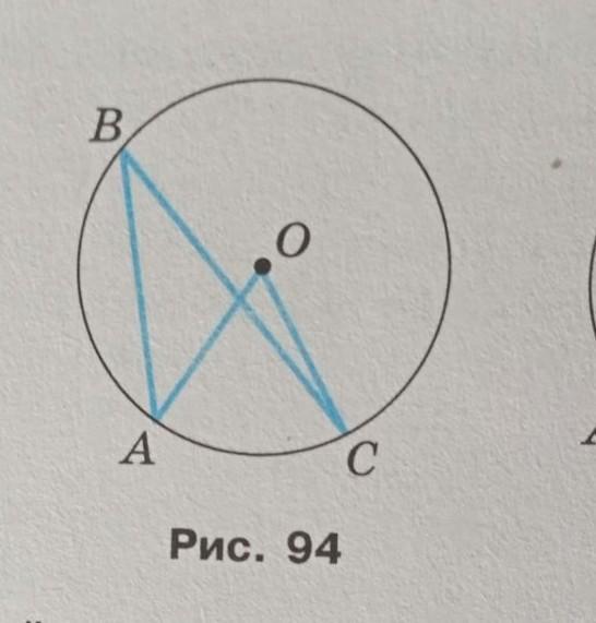 центральний кут АОС на 25° більший за вписаний кут АВС , що спирається на дугу АС. Знайдіть кути АОС і АВС