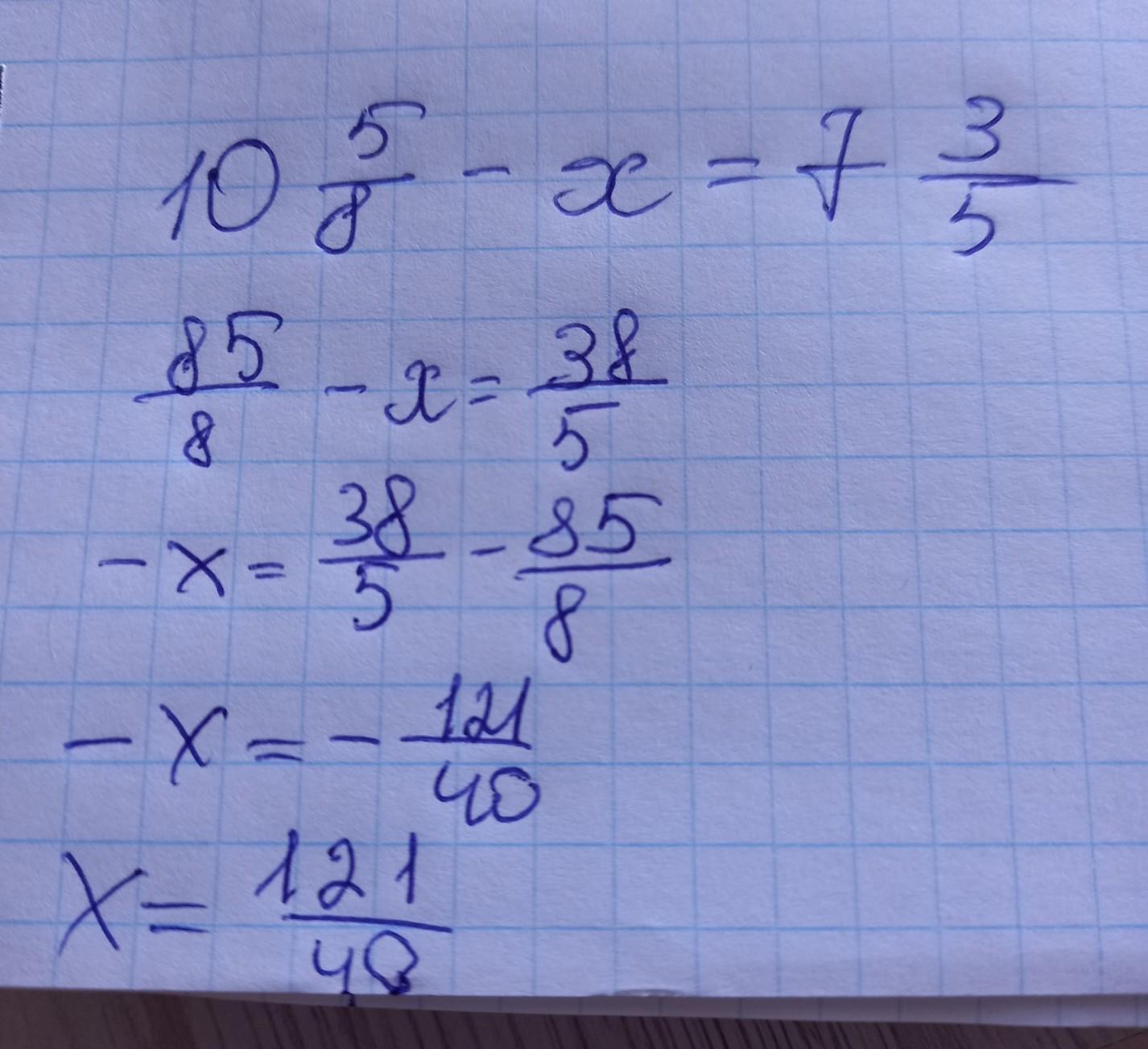 x = 10 5/8 - 7 3/5 = 10 25/40 - 7 24/40 = 3 1/40 = 3,025