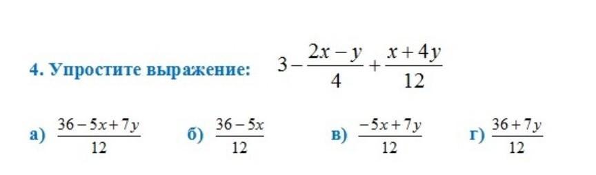 3*12-3*(2х-у/4)+х+4у/12=36-6х+3у+х+4у/12