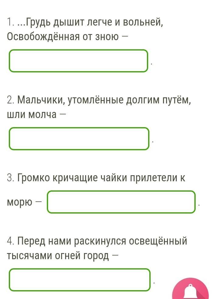 Выпиши из предложений словосочетания, состоящие из главного слова — существительного и зависимого слова — причастия. Не меняй порядок слов, в котором они даны в предложении.