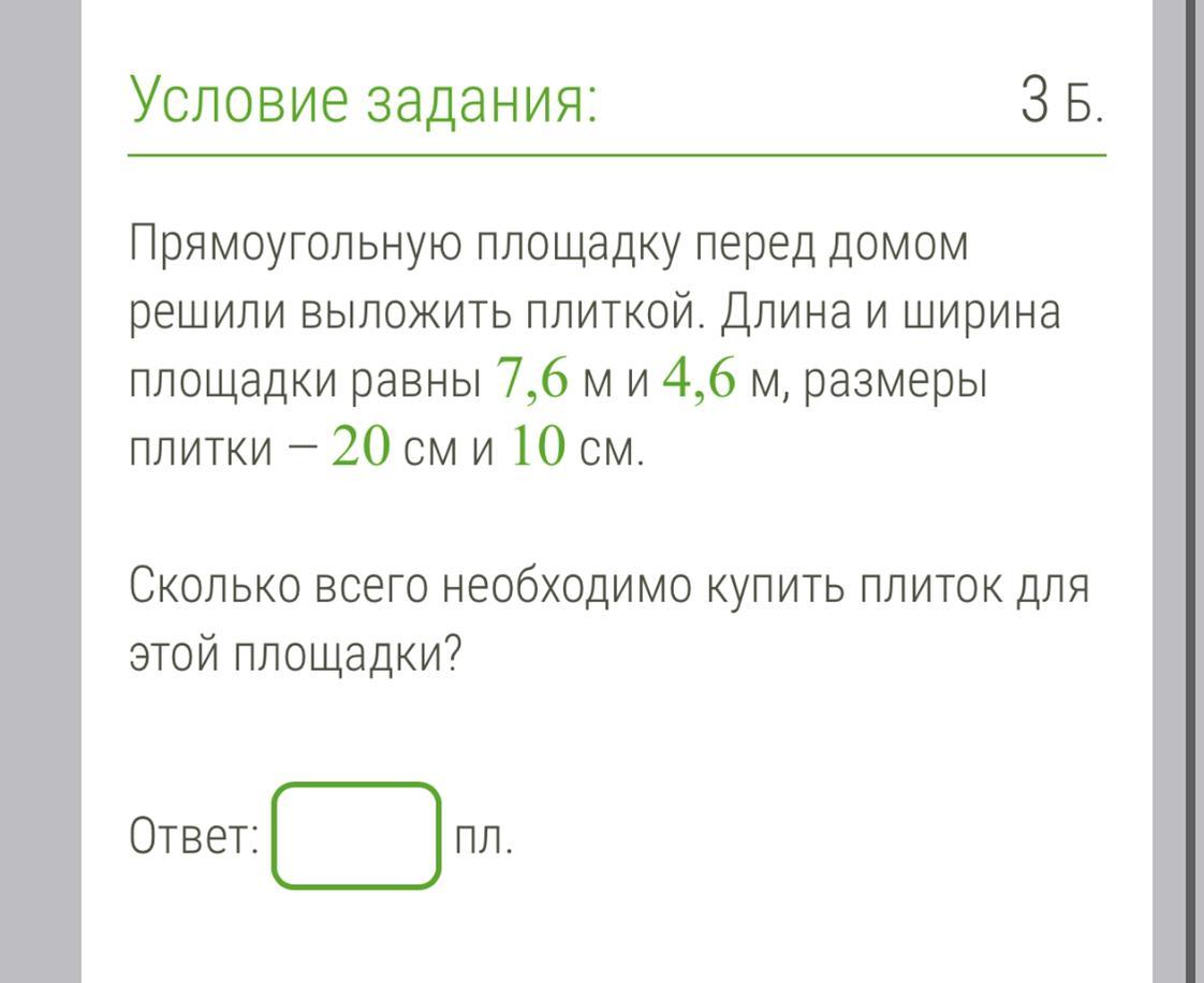 Площадь площадки = 7,6*4,6=38,88 (м^2) = 388800 (см^2)