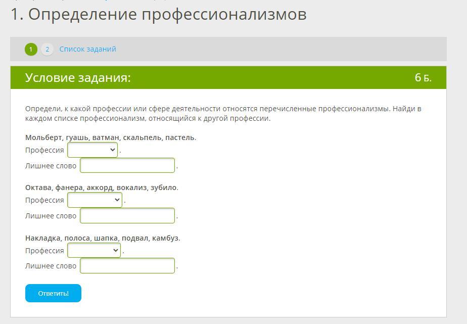Определи, к какой профессии или сфере деятельности относятся перечисленные профессионализмы. Найди в каждом списке профессионализм, относящийся к другой профессии.