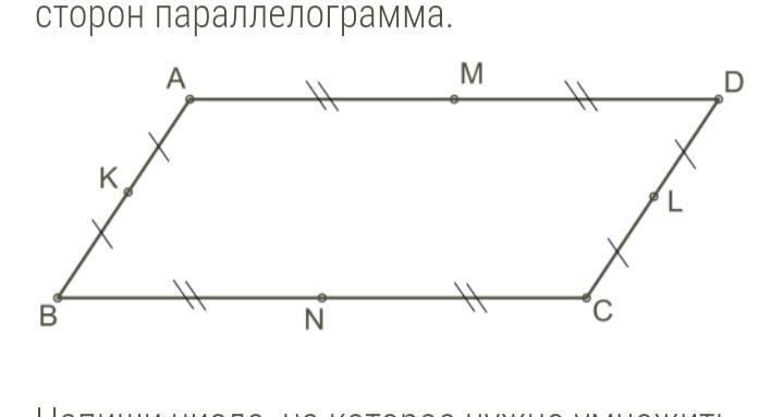 Дан параллелограмм и серединные точки сторон параллелограмма.