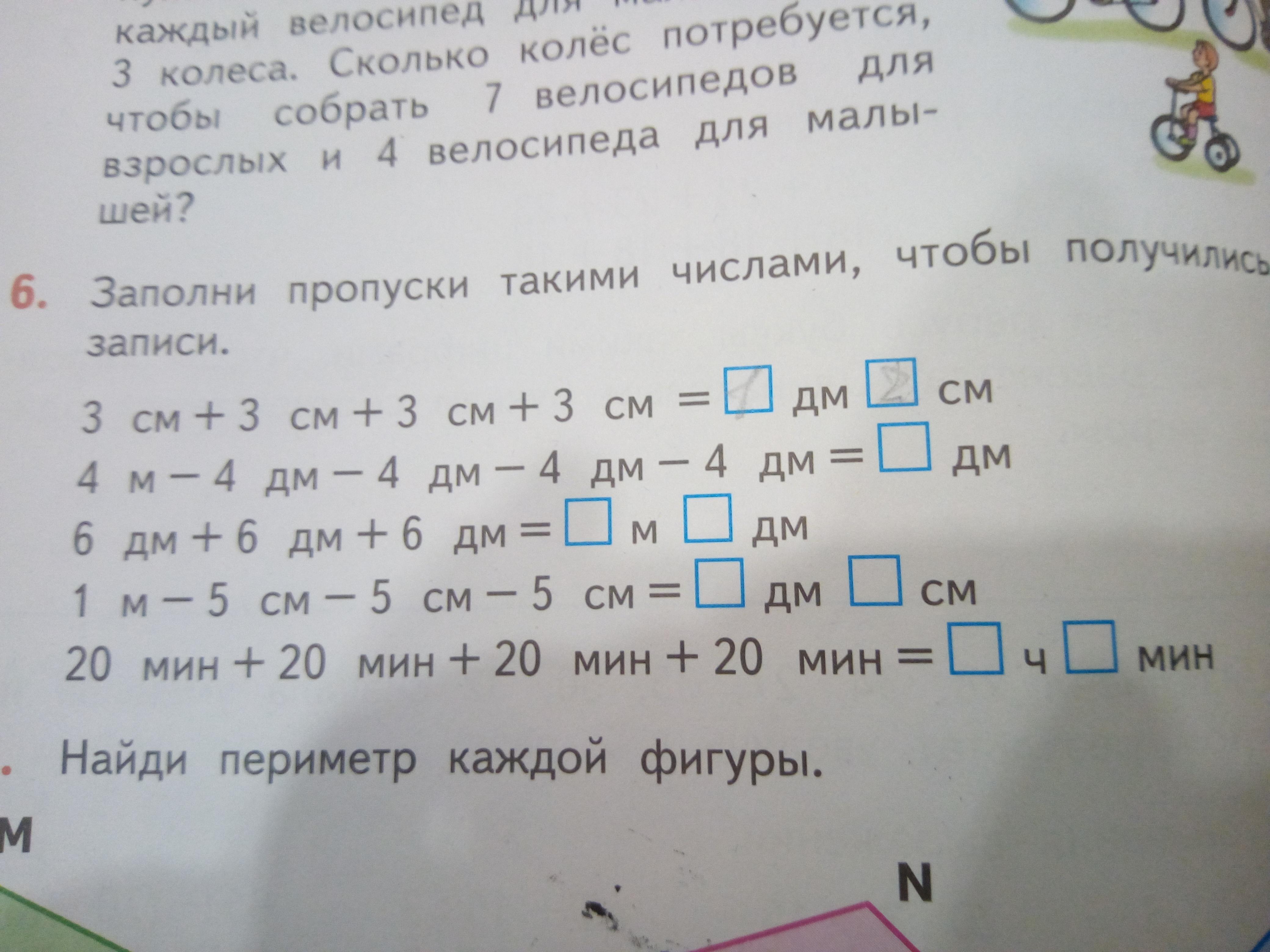 3 см + 3 см + 3 см + 3 см = 12 см = 1 дм 2 см